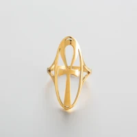 Bague ajourée croix de ankh en acier inoxydable – Unisexe