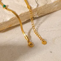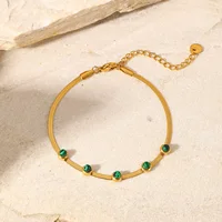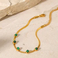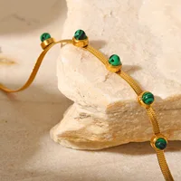 Ce bracelet, doré avec des breloques en malachite verte, est le complément parfait. Il est élégant et sophistiqué, ce qui en fait l’accessoire parfait pour toute tenue.
