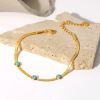 Notre bracelet chaîne à breloques avec turquoise est parfait pour tous ceux qui veulent un bijou unique et élégant. Fabriqué en acier inoxydable plaqué or 18 carats, ce bracelet est à la fois étanche et durable.