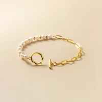 Magnifique bracelet à chaîne à maillons avec perles naturelles pour femme.