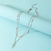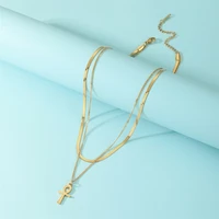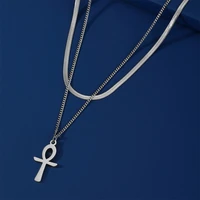 Collier avec pendentif croix de ankh en acier inoxydable pour femme